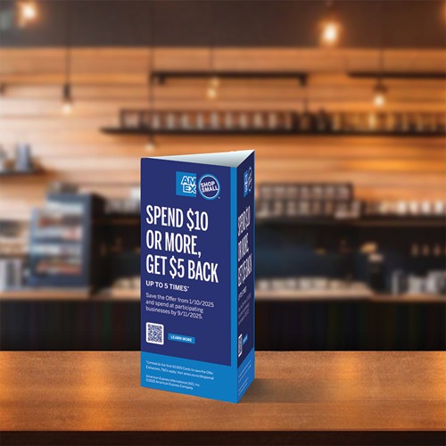 This Tent Card can sit on a store counter to signpost that you are participating in the Shop Small campaign.