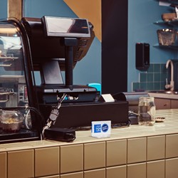 An acrylic stand featuring the SHOP SMALL logo. Please place it on the checkout counter.