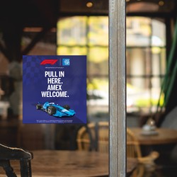 The tent card lets you show you welcome Formula 1 fans and can be displayed on bench and point of sale to encourage American Express transactions.